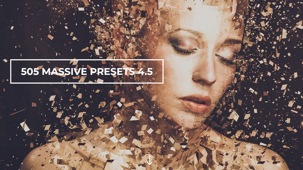 Коллекция пресетов 505 MASSIVE PRESETS 4.5 включает в себя 15 различных категорий: черный и белый, жирный оттенок и легкий оттенок (выцветший матовый вид), чистый и четкий, светящийся и гладкий, темный драматический, желтый теплый, драматический, фантазийный и ложный цвет, ложный цвет II, сильный цвет, высокая контрастность, сдвиг наклона, обновление №1 и обновление №2.